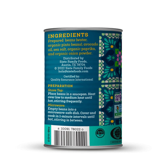 Siete Foods Vegan Refried Pinto Beans - 12 Cans