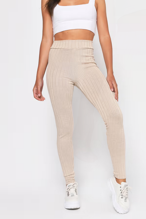 Tobi Women's Hailey Ribbed Leggings - Taupe