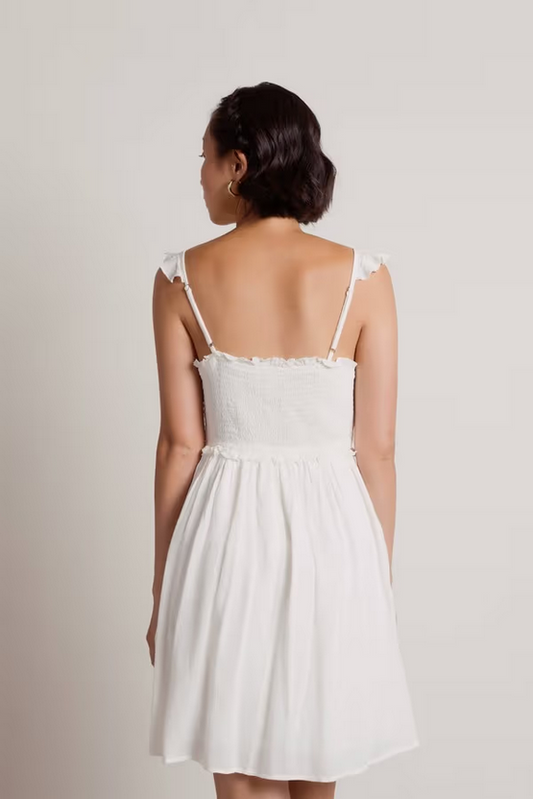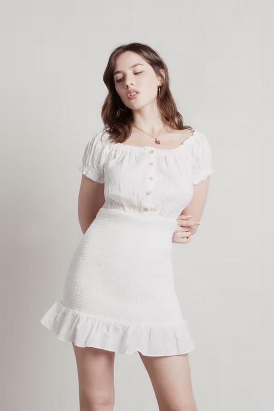 Tobi Women's Guessing Game Ruffle Smocked Mini Dress - Off White