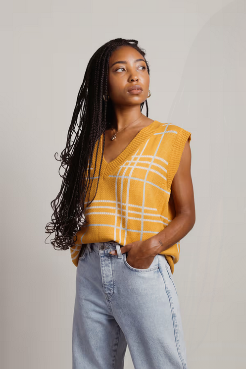 Tobi Women's Honey Bee Plaid Sweater Vest - Mustard