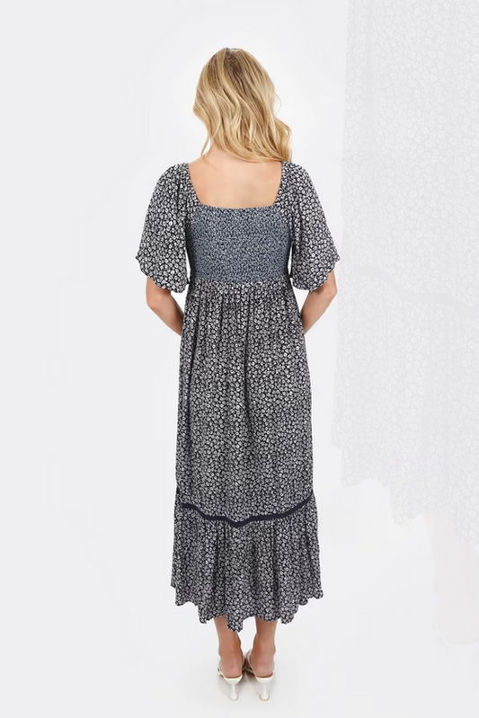 Tobi Women's Maeve Smocked Buttoned Midi Dress