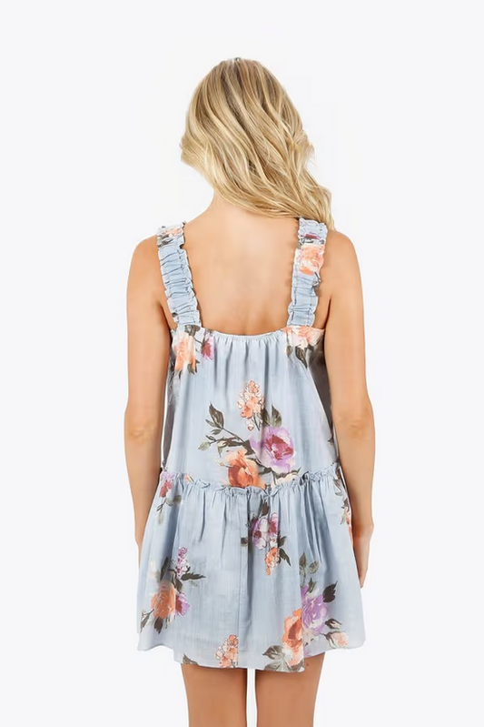 Tobi Women's Milena Floral Ruffle Mini Dress - Blue Multi