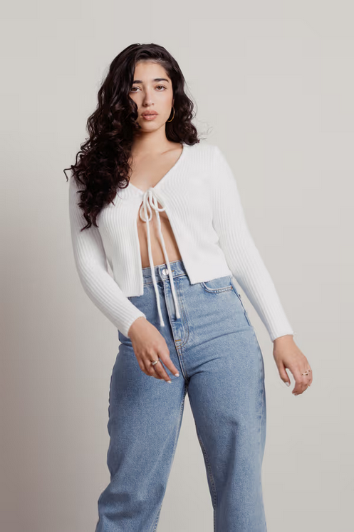 Tobi Women's Tease Me Front Tie Cardigan - Ivory
