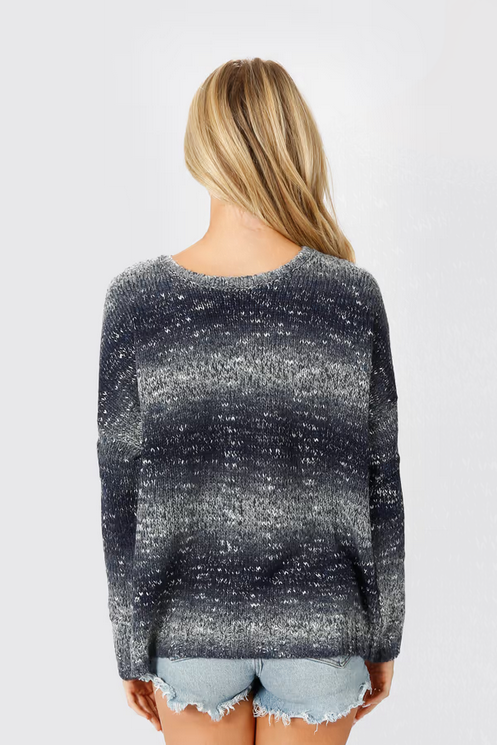 Tobi Women's With My Ombre Crew Neck Sweater - Navy Multi