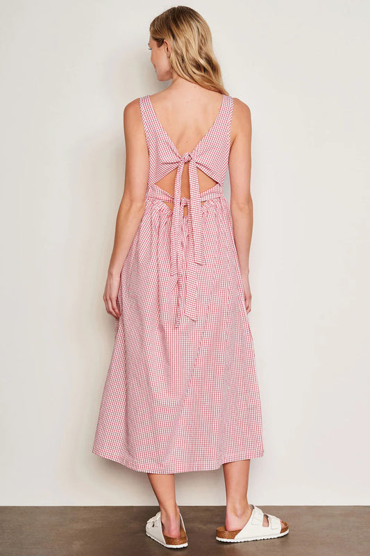BAILEY/44 Women's Sundry Beachside Check Midi Tie Back Dress in Optic White