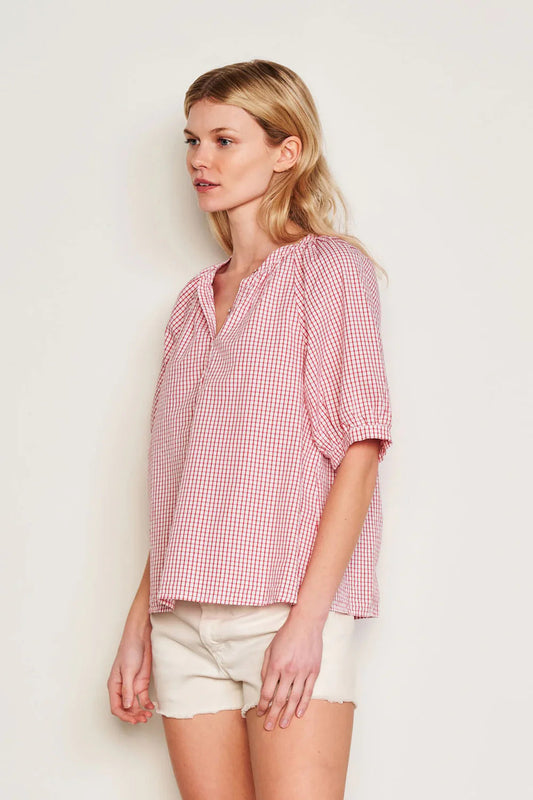 BAILEY/44 Women's Sundry Beachside Check Femme Raglan Henley in Optic White