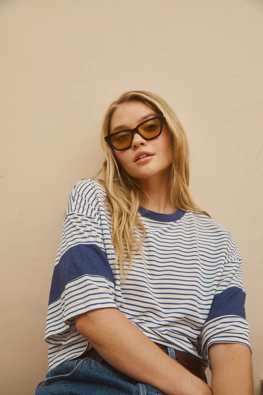 BAILEY/44 Women's Sundry Boxy Blocked Tee Classic Stripe in Optic White