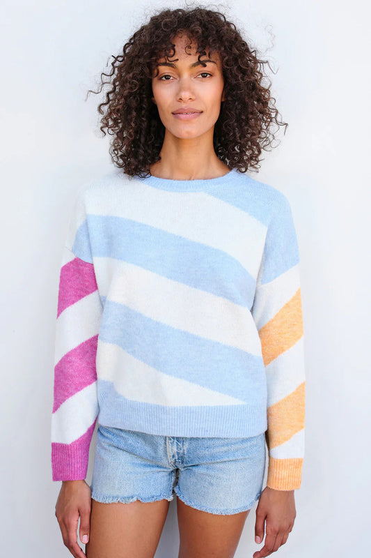 BAILEY/44 Women's Sundry Diagonal Stripes Sweater in Flamingo/Sky/Sorbet