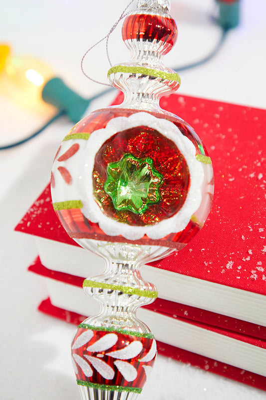 Decorator's Warehouse 11" Red and White Glass Reflector Traditional Finial Ornament