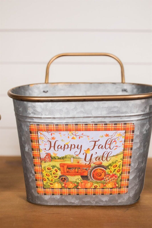Decorator's Warehouse 12" Galvanized Metal Harvest Scene Wall Hanging Buckets - Set of 3