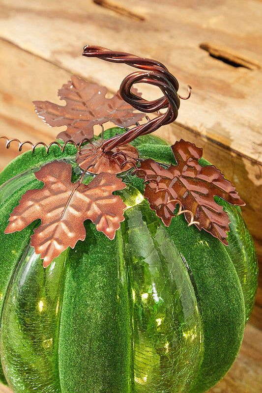 Decorator's Warehouse 12" Velvet & Glass Light Up Pumpkin - Green