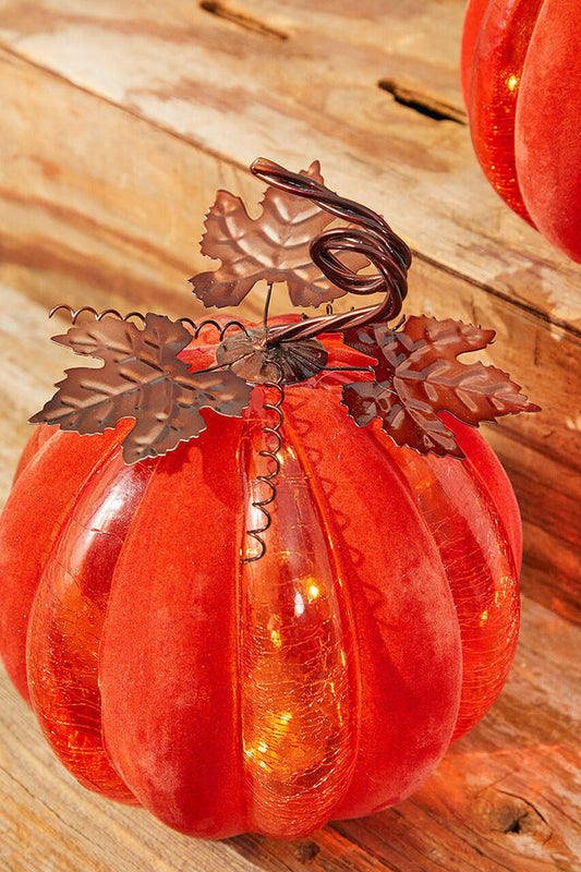 Decorator's Warehouse 12" Velvet & Glass Light Up Pumpkin - Orange