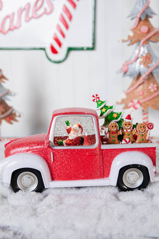 Decorator's Warehouse 11.5” B/O Lighted Water Globe Red Truck with Gingerbread Family