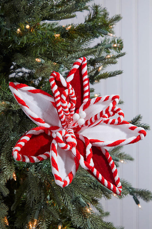 Decorator's Warehouse 22" x 12.5" Red & White Peppermint Poinsettia Stem