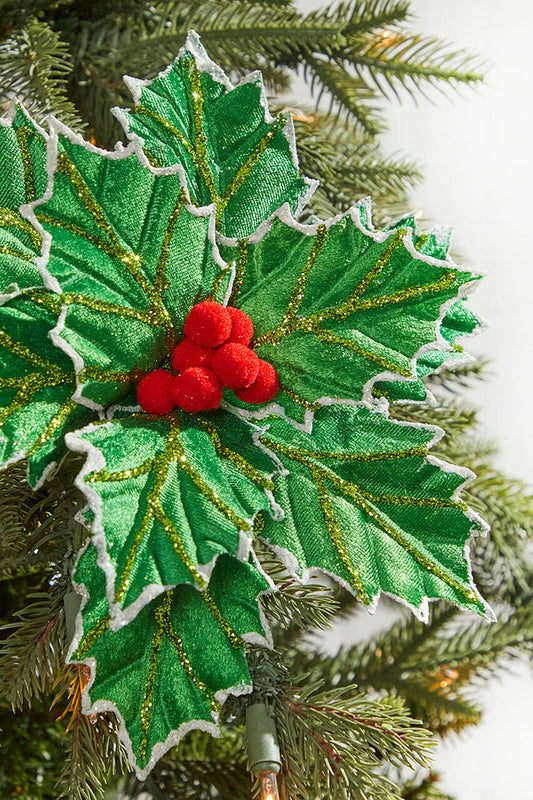 Decorator's Warehouse 22" x 9" Green with Red Berries Holly Poinsettia Stem