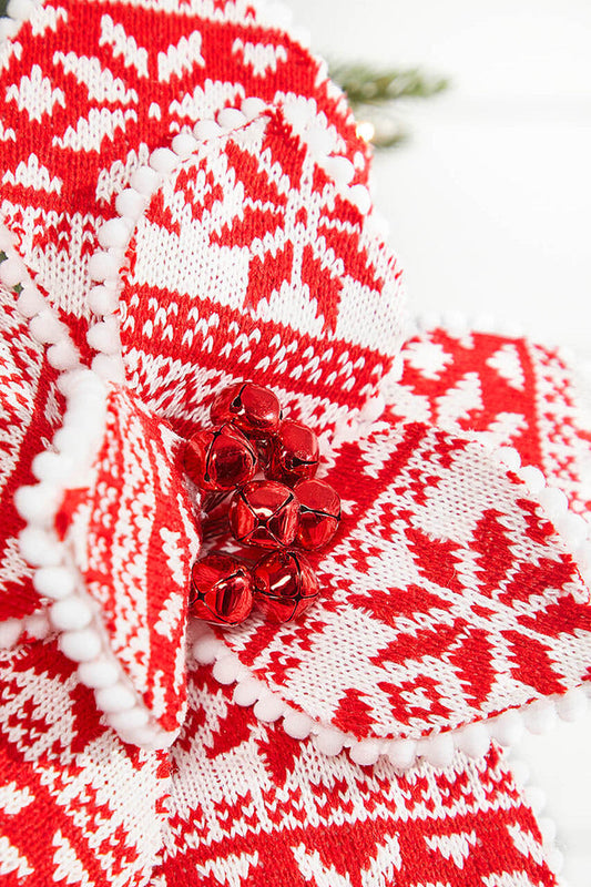 Decorator's Warehouse 22" x 10" Red and White Knit Poinsettia Stem