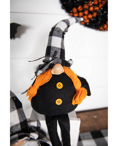 Decorator's Warehouse 22” Fabric Halloween Buffalo Check Gnome Shelf Sitter