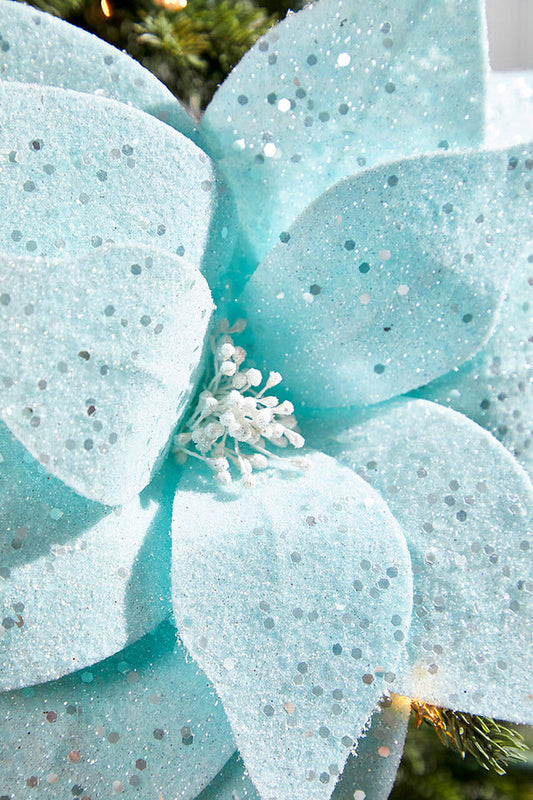 Decorator's Warehouse 22" x 12" Teal with Sparkles Frosted Poinsettia Stem
