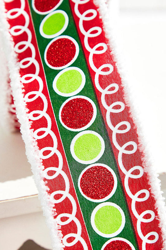 Decorator's Warehouse 2.5" x 10 Yard Stripe Glitter Circle Drift Ribbon — Red/Green