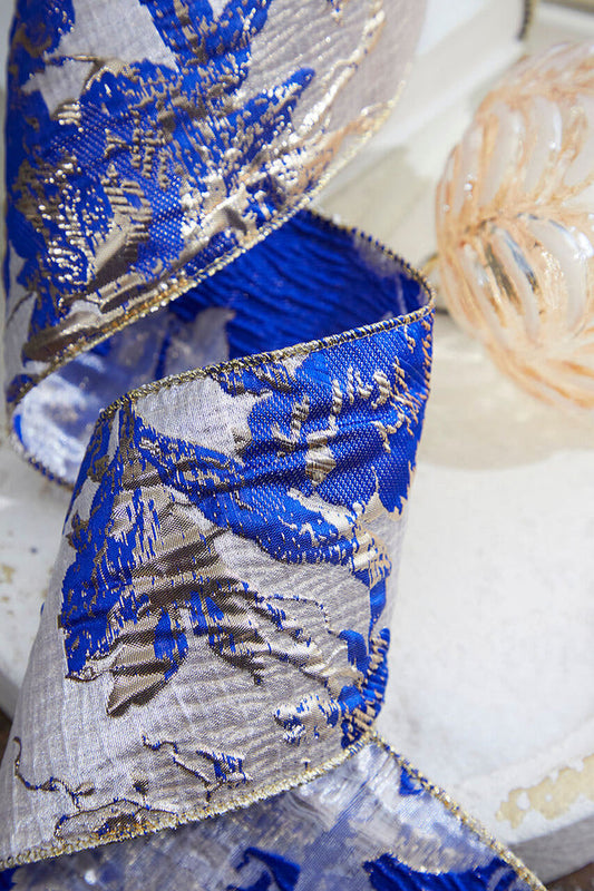 Decorator's Warehouse 4" x 10 Yard Blue and Champagne Jaquard Ribbon