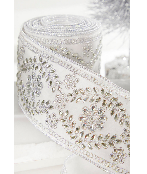 Decorator's Warehouse 4" x 5 Yard Dupioni with Jeweled Scroll Ribbon