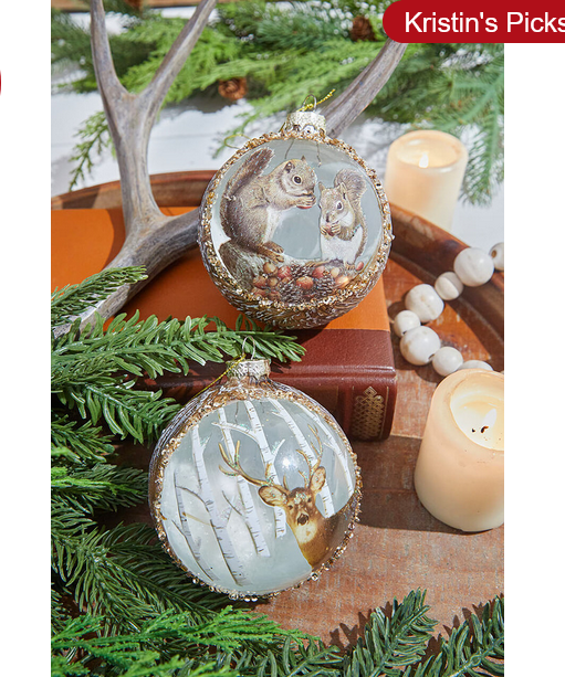 Decorator's Warehouse 4" Glass Deer & Squirrel Scene Ball Ornament