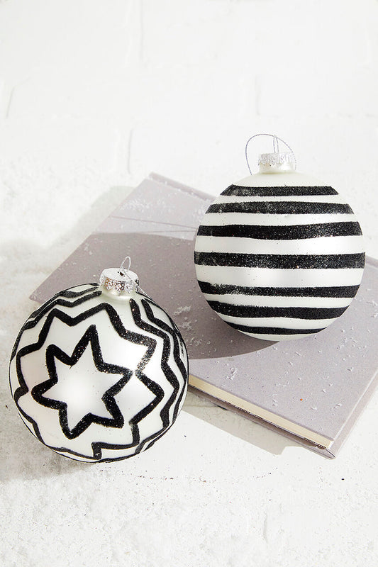 Decorator's Warehouse 4" Black with Stripes/Zig Zag Glass Ball Ornament