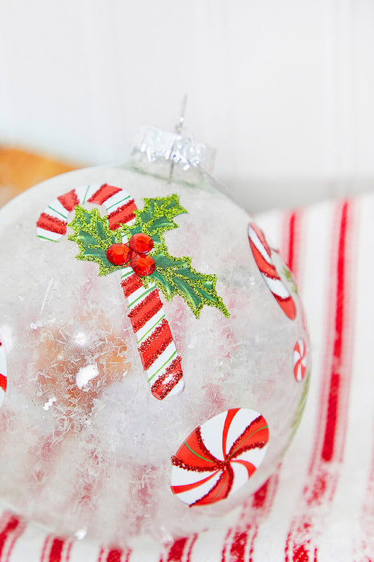 Decorator's Warehouse 4" Glass Candy Cane Ball Ornament