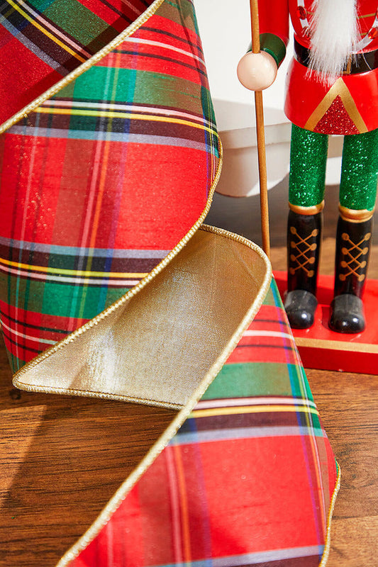 Decorator's Warehouse 4" x 10 Yard Nutcracker Plaid Dupioni Double Backed Ribbon - Red