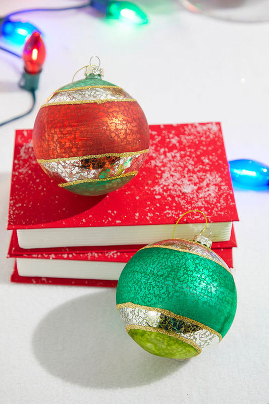 Decorator's Warehouse 4" Gold/Silver Stripe Mercury Ball Ornament Box - Set of 4