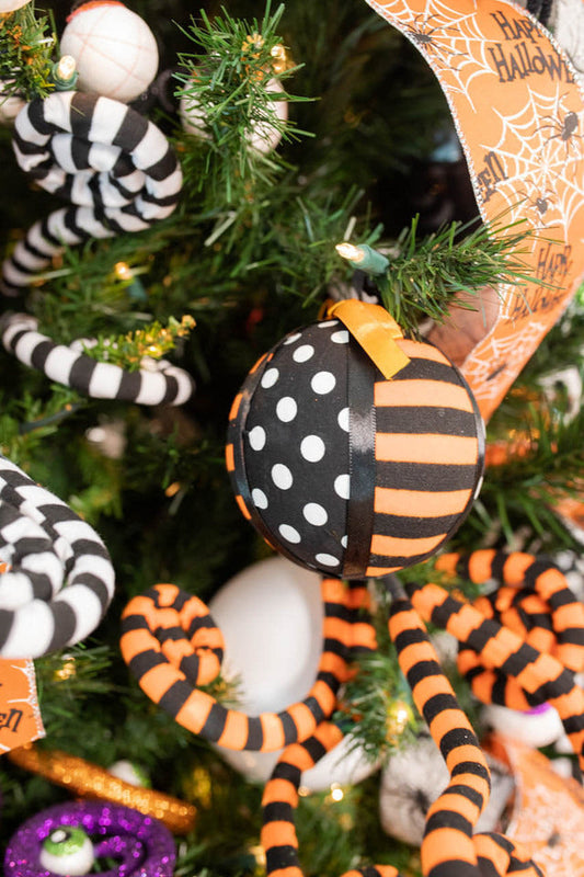 Decorator's Warehouse 4” Polkadot Stripe Halloween Ribbon Ball Ornament