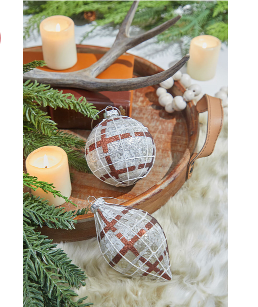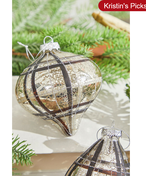 Decorator's Warehouse 4-6" Mercury Glass Plaid Ornament
