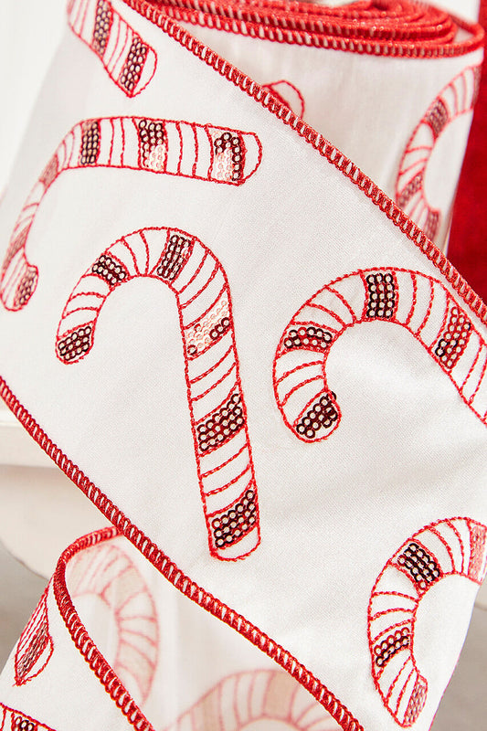 Decorator's Warehouse 4" x 5 Yard Red/White Sequin Embroidered Candy Cane Ribbon