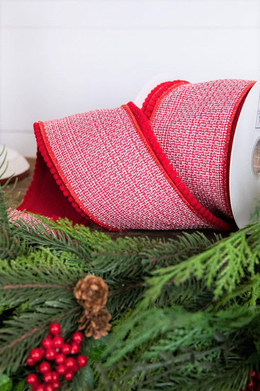 Decorator's Warehouse 4” x 5 Yard Houndstooth Pom Pom Trim Ribbon