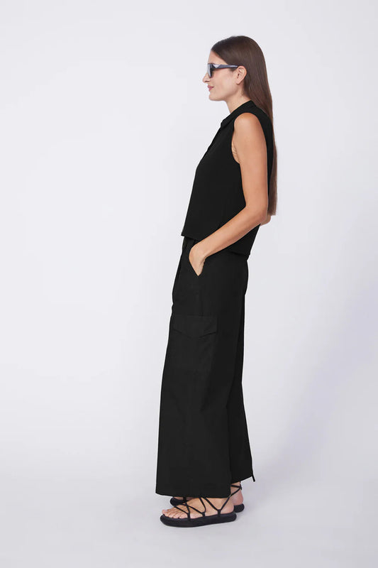 BAILEY/44 Women's Stateside Fine Poplin Wide Leg Cargo Pant in Black