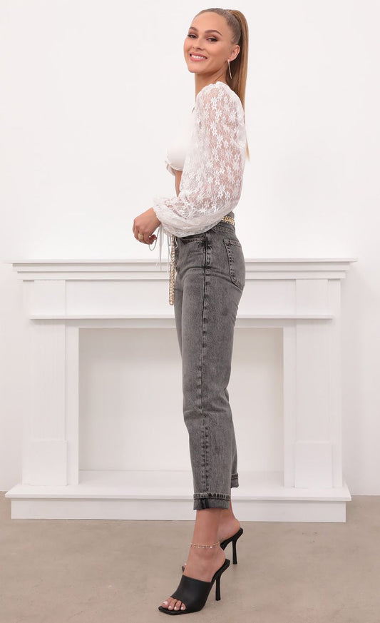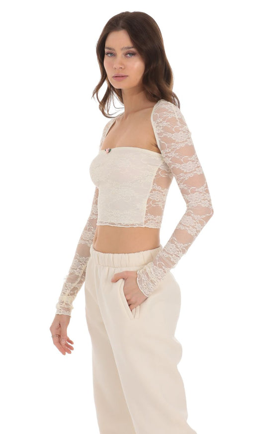 Lucy in the Sky Lace Long Sleeve Top in Cream