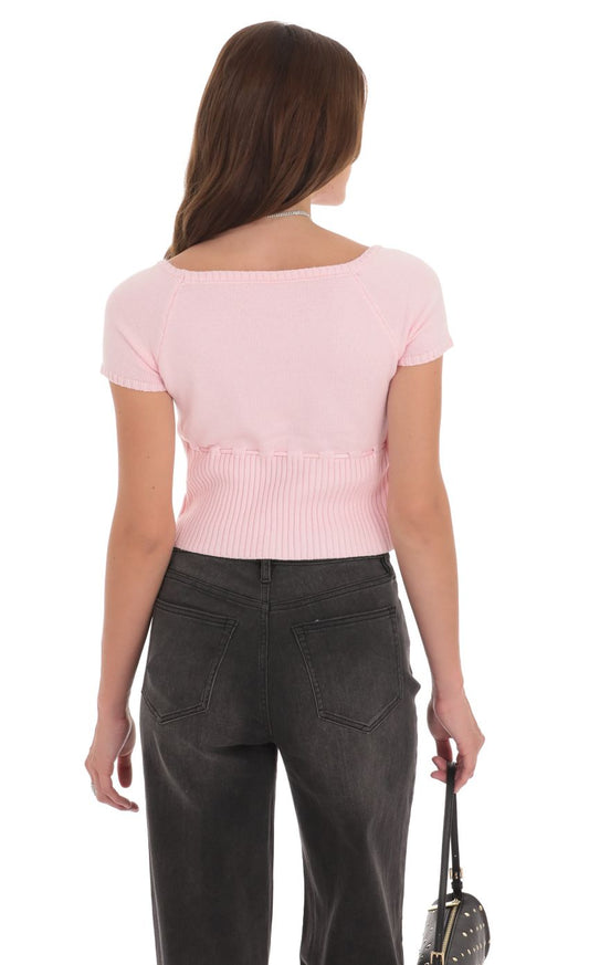 Lucy in the Sky Knit Drawstring Cinch Top in Pink