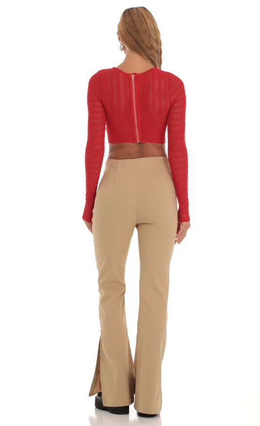 Lucy in the Sky Long Sleeve Corset Top in Red
