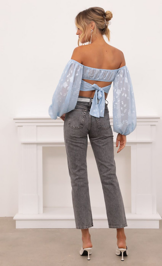 Lucy in the Sky Off Shoulder Top in White and Gold