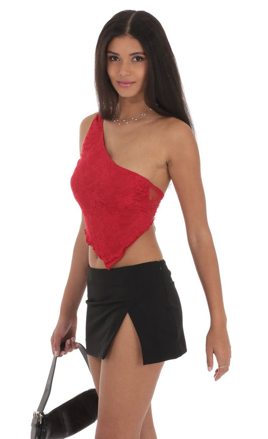 Lucy in the Sky One Shoulder Lace Top in Pink