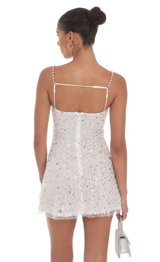 Lucy in the Sky Pearl Strap Sequin Dress in White