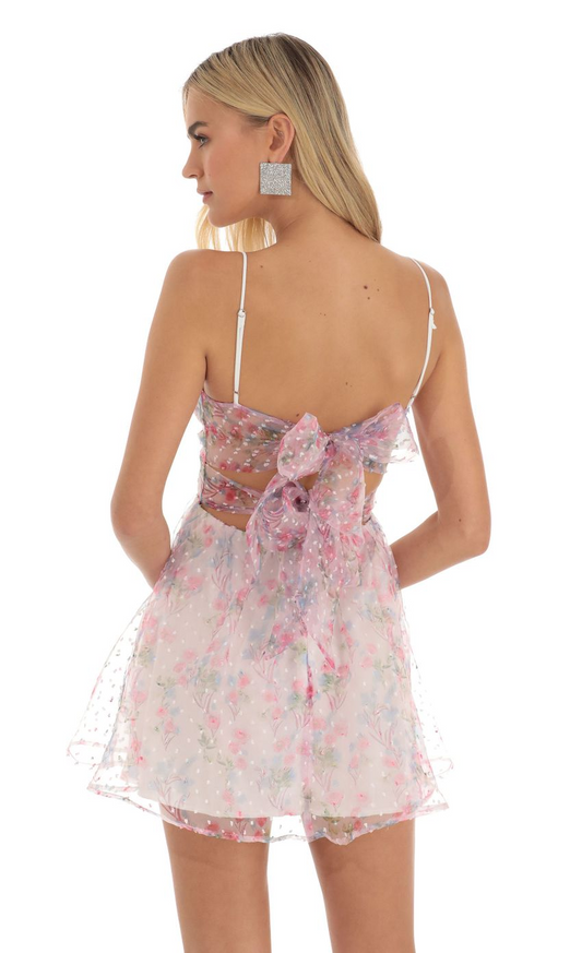 Lucy in the Sky Pink Floral Dotted Dress in White