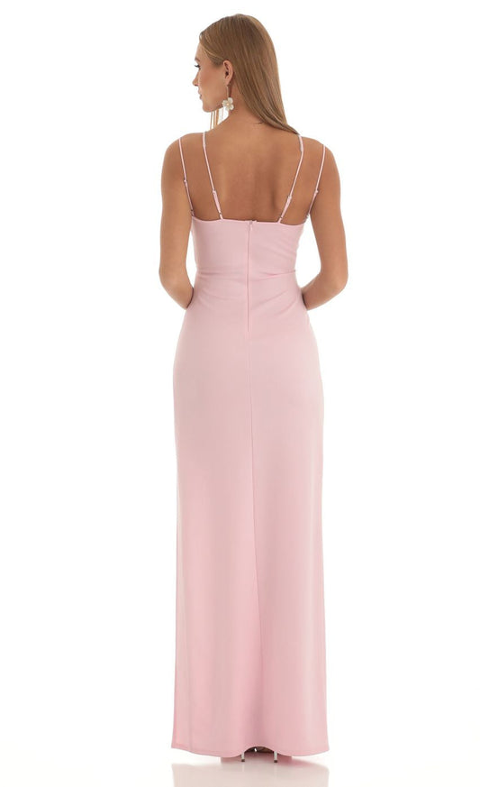 Lucy in the Sky Rhinestone Slit One Shoulder Maxi Dress in Pink