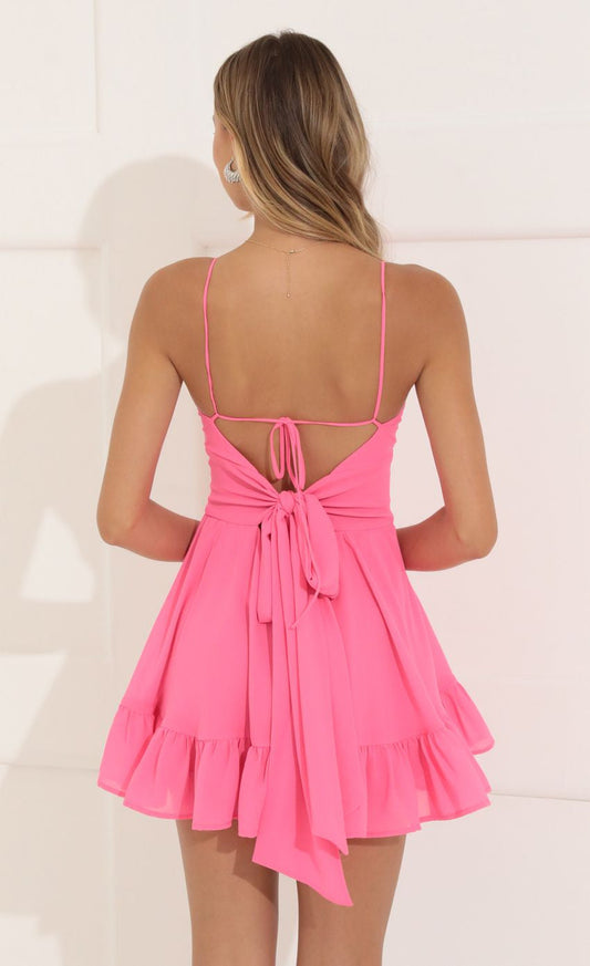 Lucy in the Sky Ramona Chelsea Chiffon Flare Dress in Pink