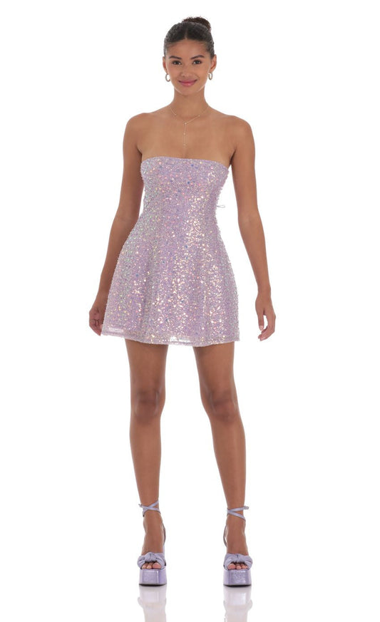 Lucy in the Sky Sequin Glitter Strapless Fit and Flare Dress in Lilac