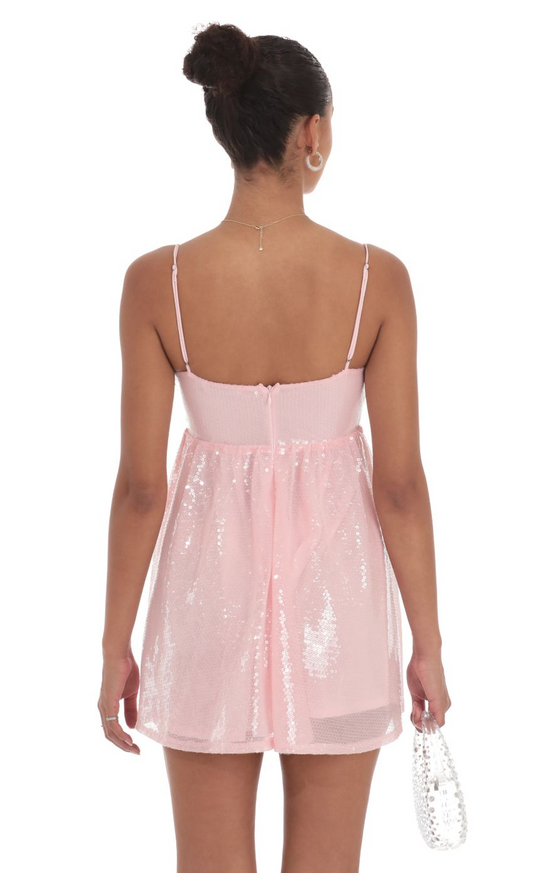 Lucy in the Sky Sequin Front Bow Babydoll Dress