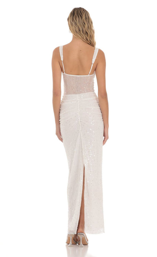 Lucy in the Sky Sequin Mesh Maxi Dress in White