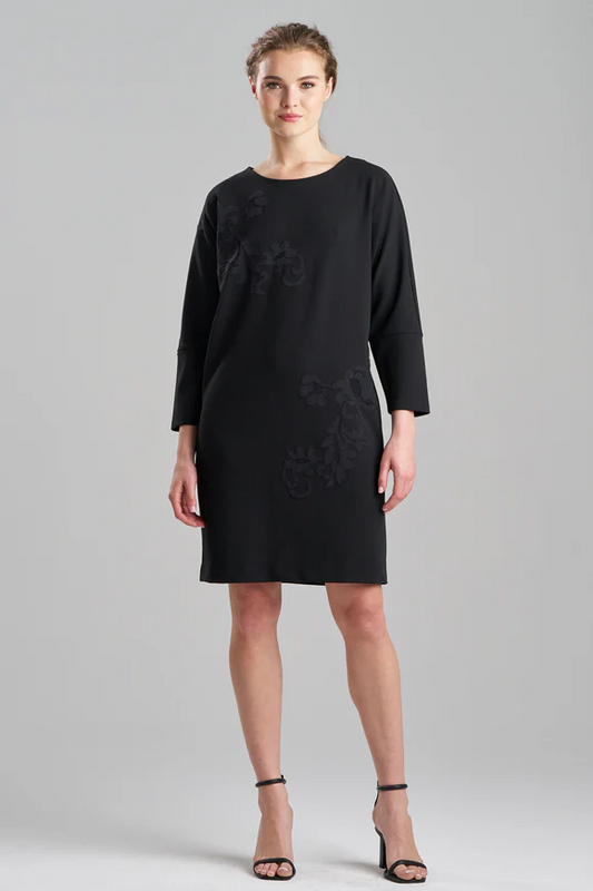 Natori Solid Knit Crepe Embroidered T-Shirt Dress