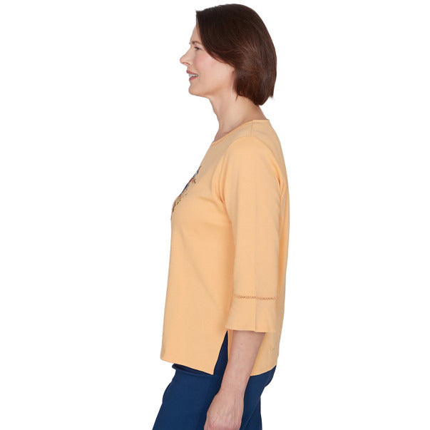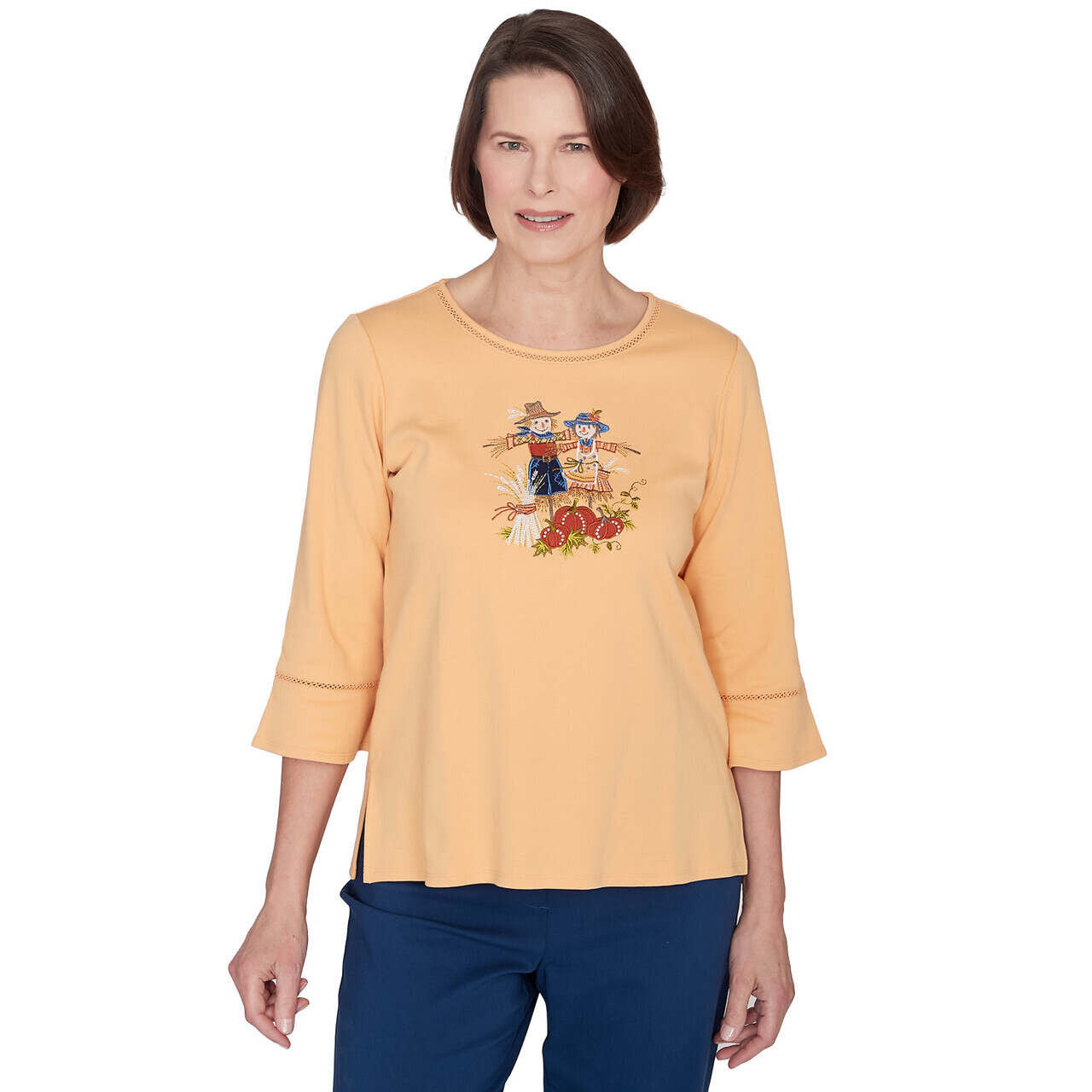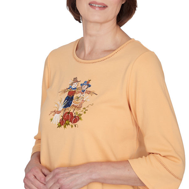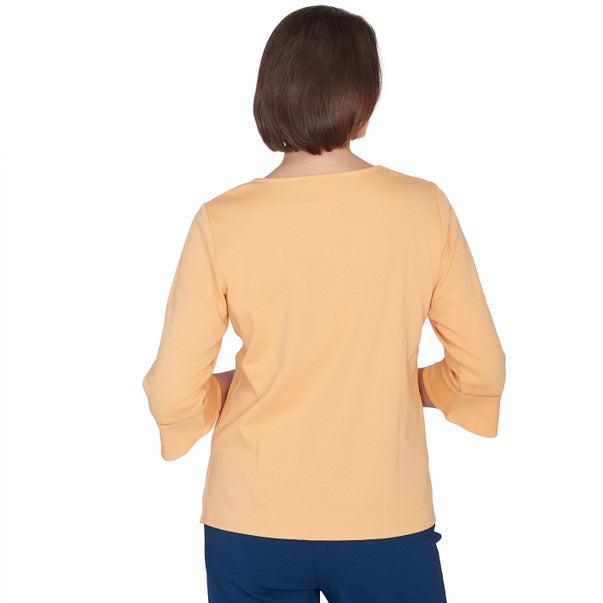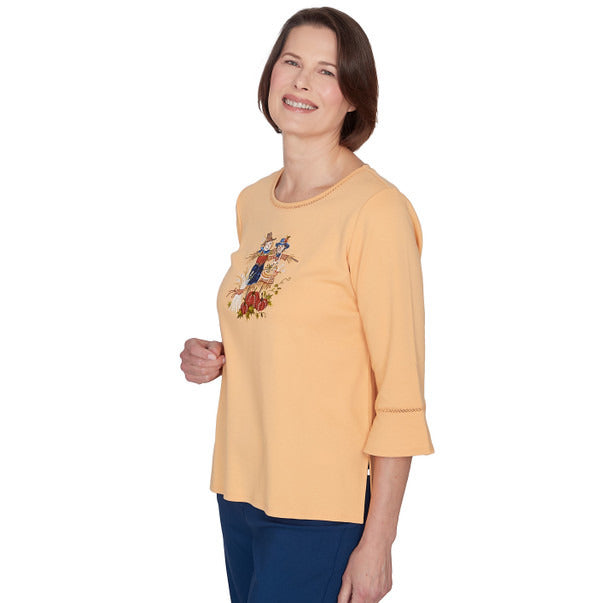 Alfred Dunner Women's Scarecrow Detailed Bell Sleeves Top
