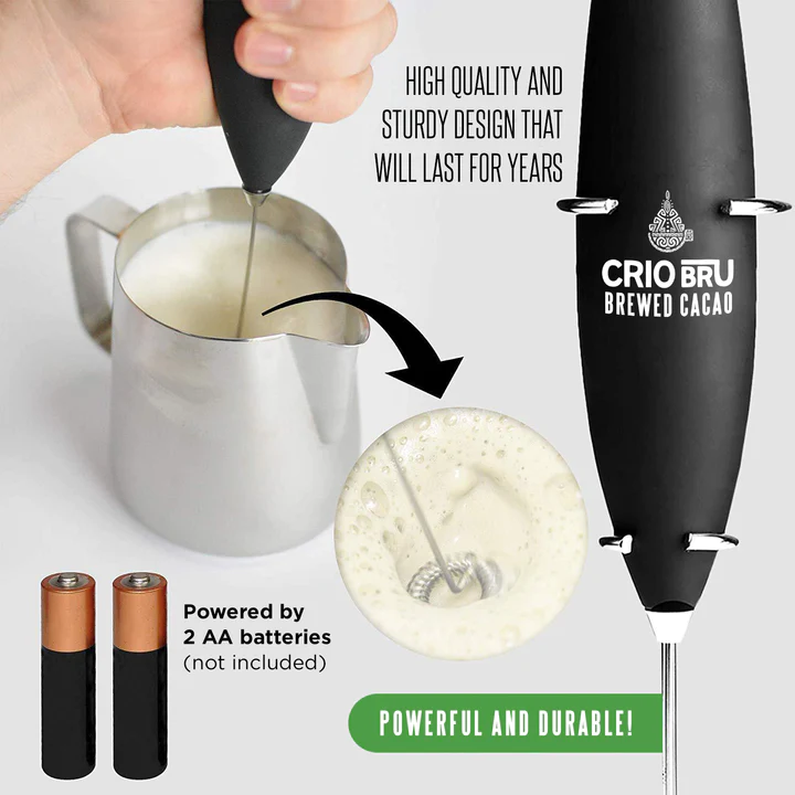 - MAKE RICH, CREAMY FROTH IN SECONDS: The Crio Bru Brewed Cacao Frother gives that professional finishing touch to your cup of Crio Bru Brewed Cacao. The benefits of having your own electric drink whisk mixer are endless, you can make your own best latte, you know your tastes best.